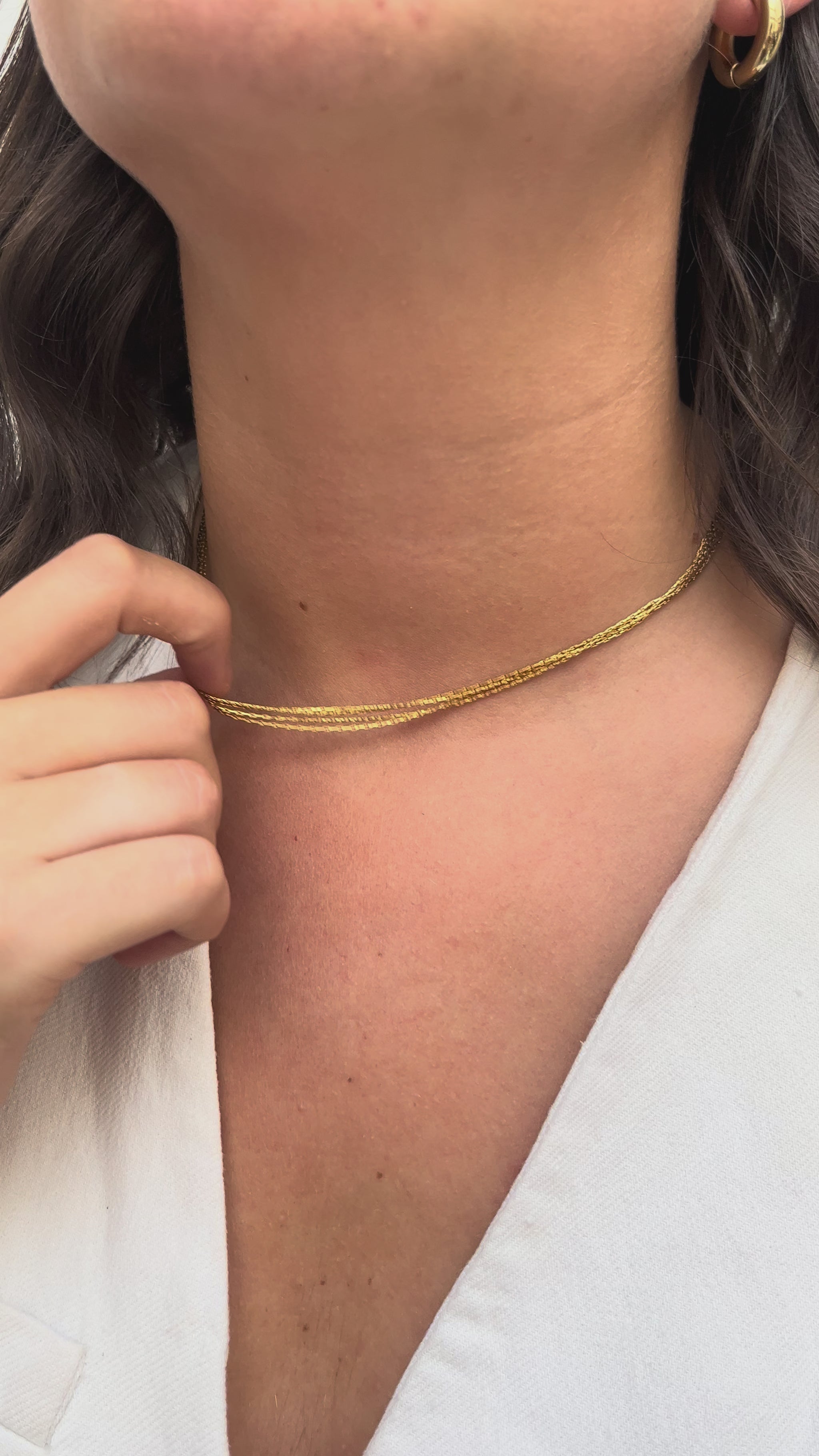 +Ras-de-cou doré composé de chaînes fines superposées. Léger, souple et lumineux parfait pour vos toutes les occasions.